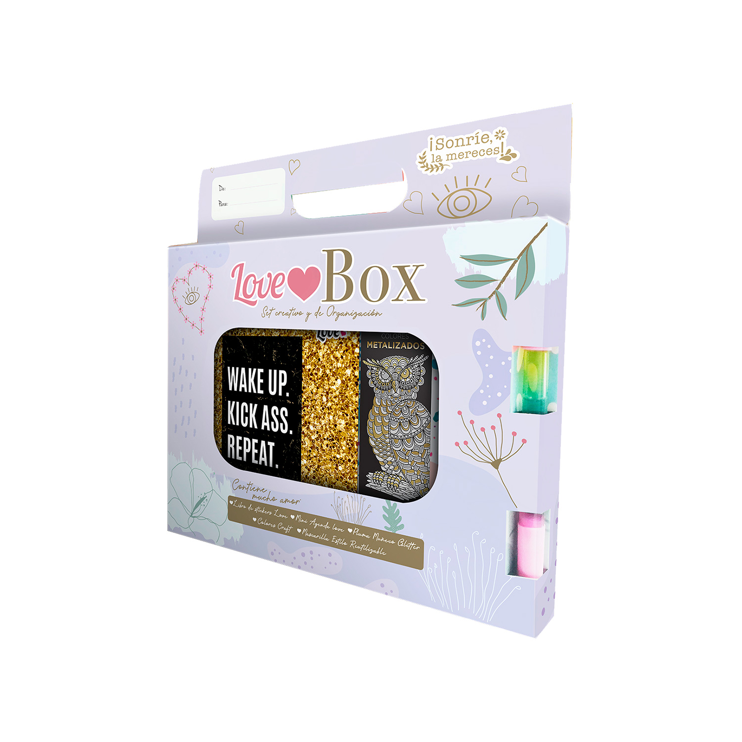 LOVE BOX EDITION LIMITADA INCLUYE:MINI AGENDA, COLORES CRAFT, MASCARILLA, LIBRO DE STICKER, BOLIGRAFO GLITTER$ 10.00 IVA incluido -