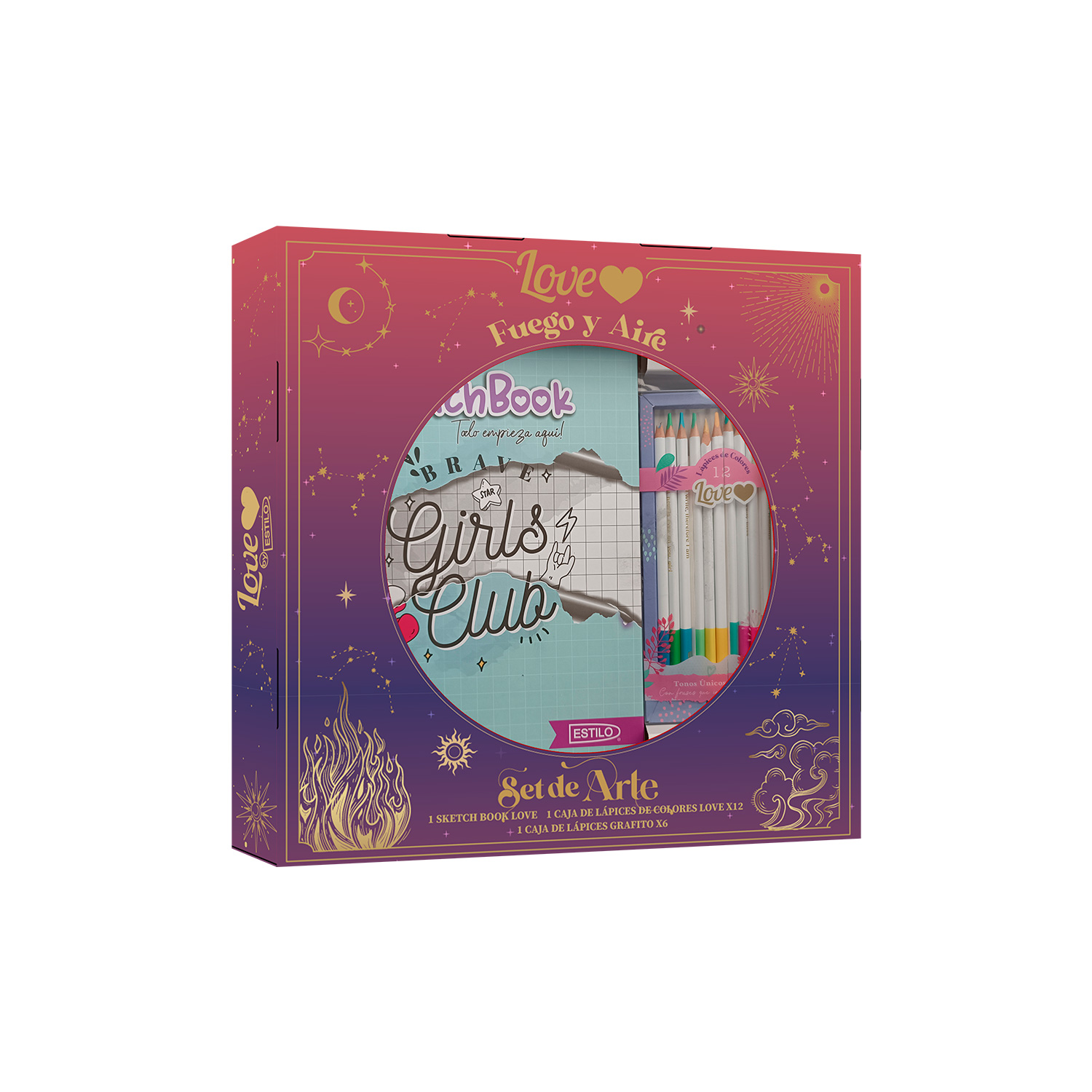 LOVE BOX ART EDITION FUEGO Y AIRE INCLUYE: LIBRETA, COLORES, GRAFITO SAP 46940$ 10.00 IVA incluido