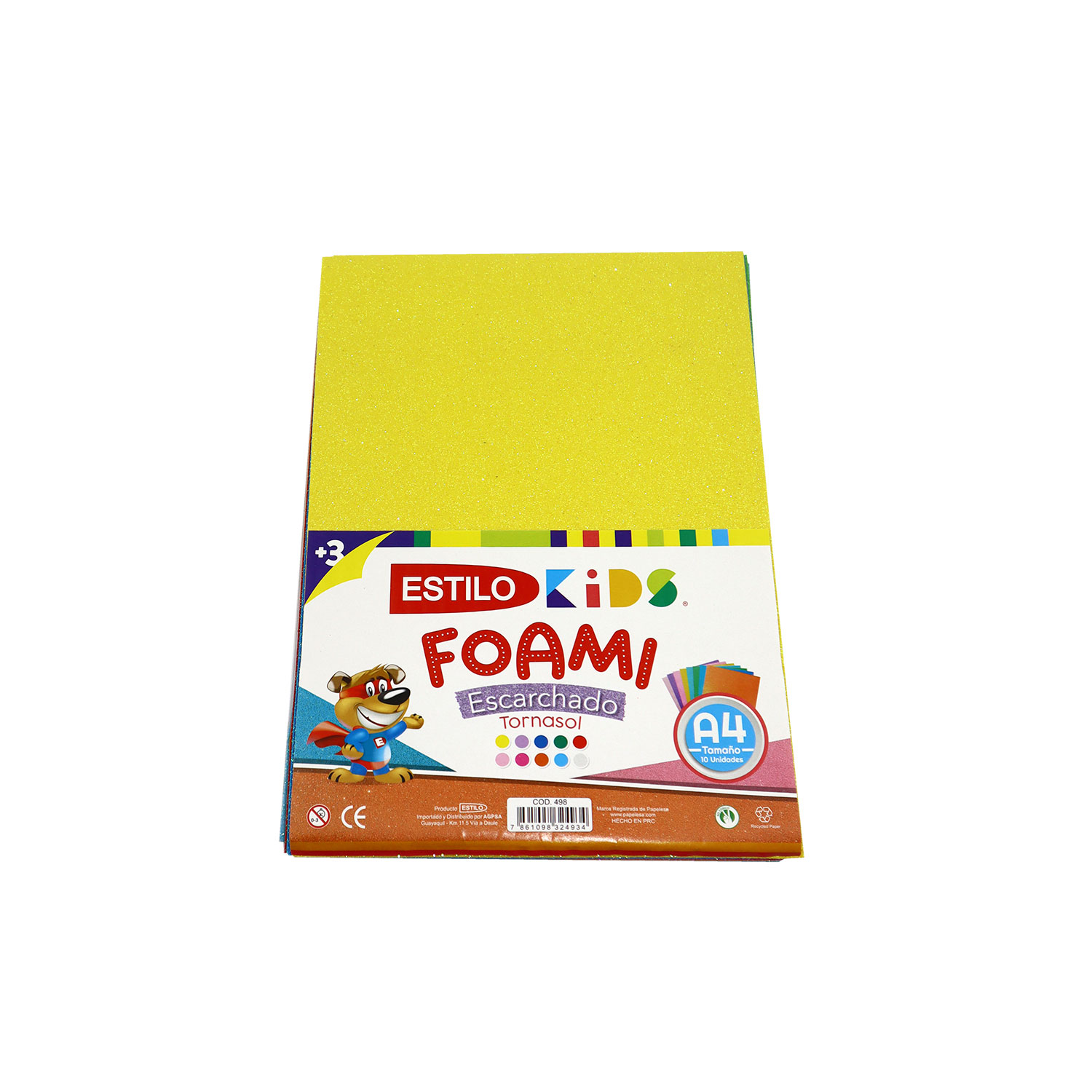 FOMI ESTILO ESCARCHADO A4 FUNDA DE 10 UNIDADES COLORES SURTIDO$ 14.00 IVA incluido -