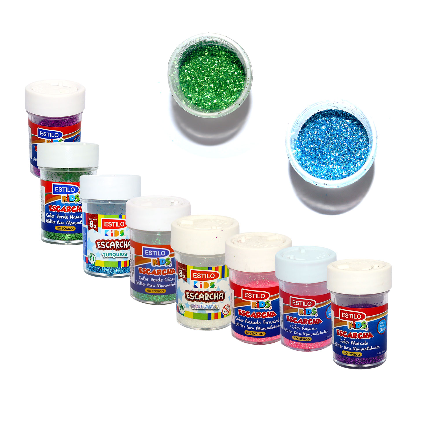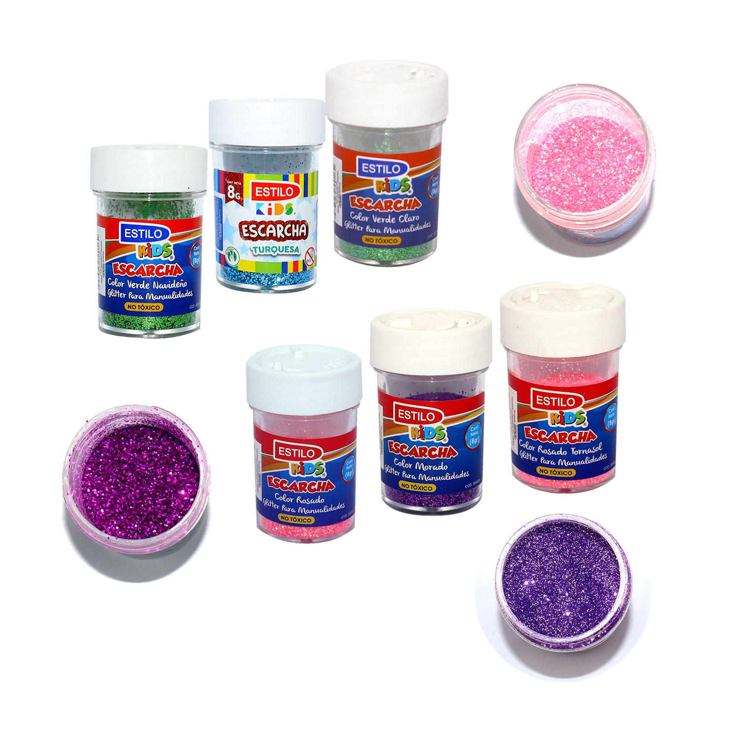 ESCARCHA ESTILO KIDS FRASCO 8 GR DISPONIBLE EN COLORES AZUL, DORADO, FUCSIA, LILA, MORADO, PLATEADO, ROSADO, ROSADO FUERTE, VERDE CLARO, VERDE NAVIDEÑO, TURQUESA$ 10.00 – $ 16.00 IVA incluido -