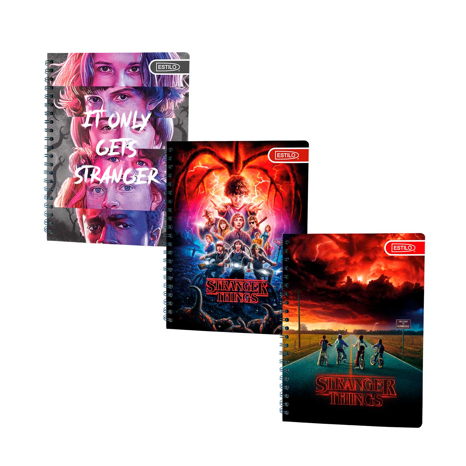 CUADERNO UNIVERSITARIO 100 HOJAS STRANGERS THINGS DISPONIBLE RAYADOS CUADROS, 1 LINEA, 2 LINEAS