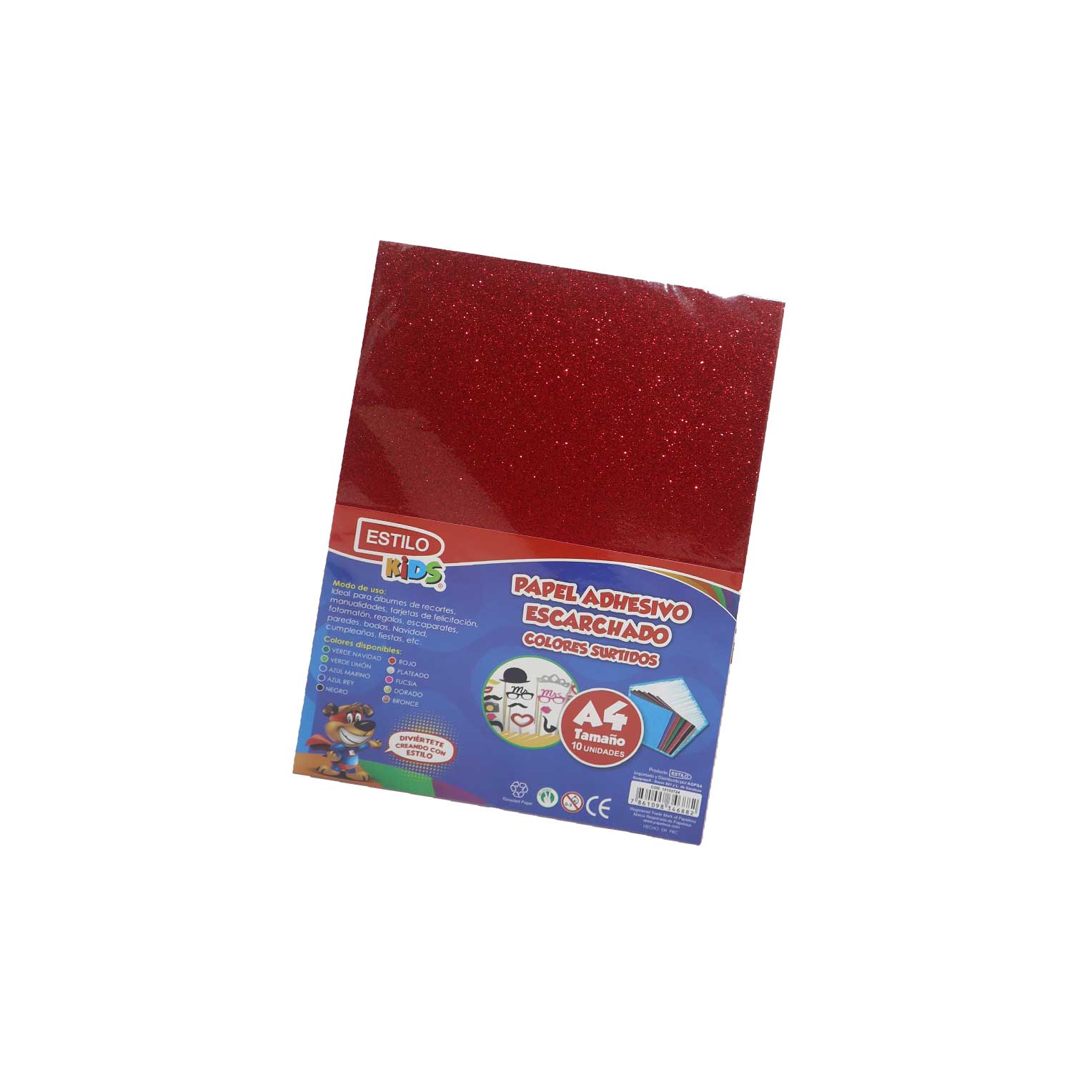 PAPEL ESCARCHADO ADHESIVO ESTILO A4 FUNDA DE 10 COLORES SURTIDO
