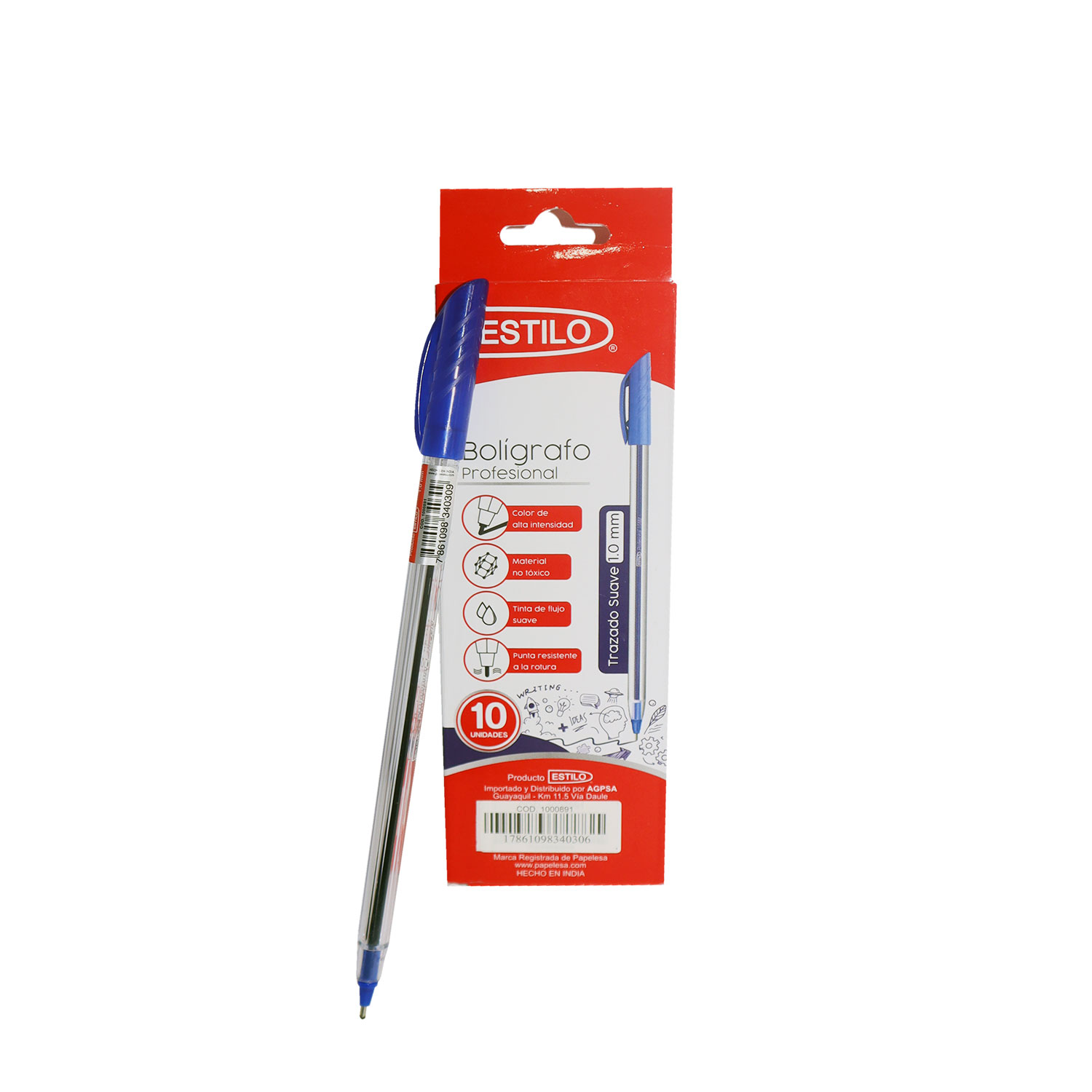 BOLIGRAFO ESTILO PUNTA MEDIA 1.0MM DISPONIBLE COLORES AZUL, NEGRO, ROJO – AZUL