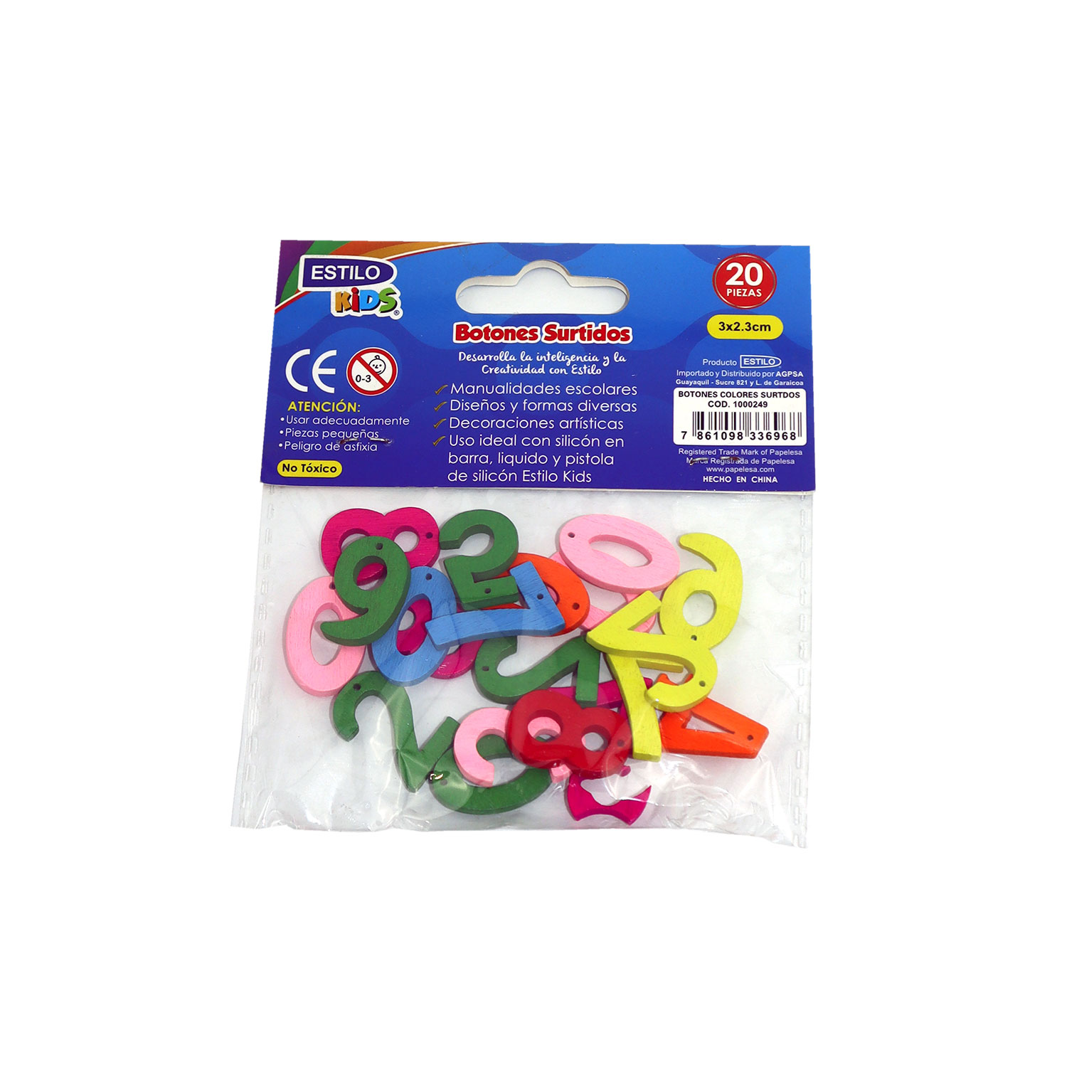 BOTONES DE MADERA ESTILO KIDS NUMEROS 20PCS 3.23MM REF.MTCR-WDC265