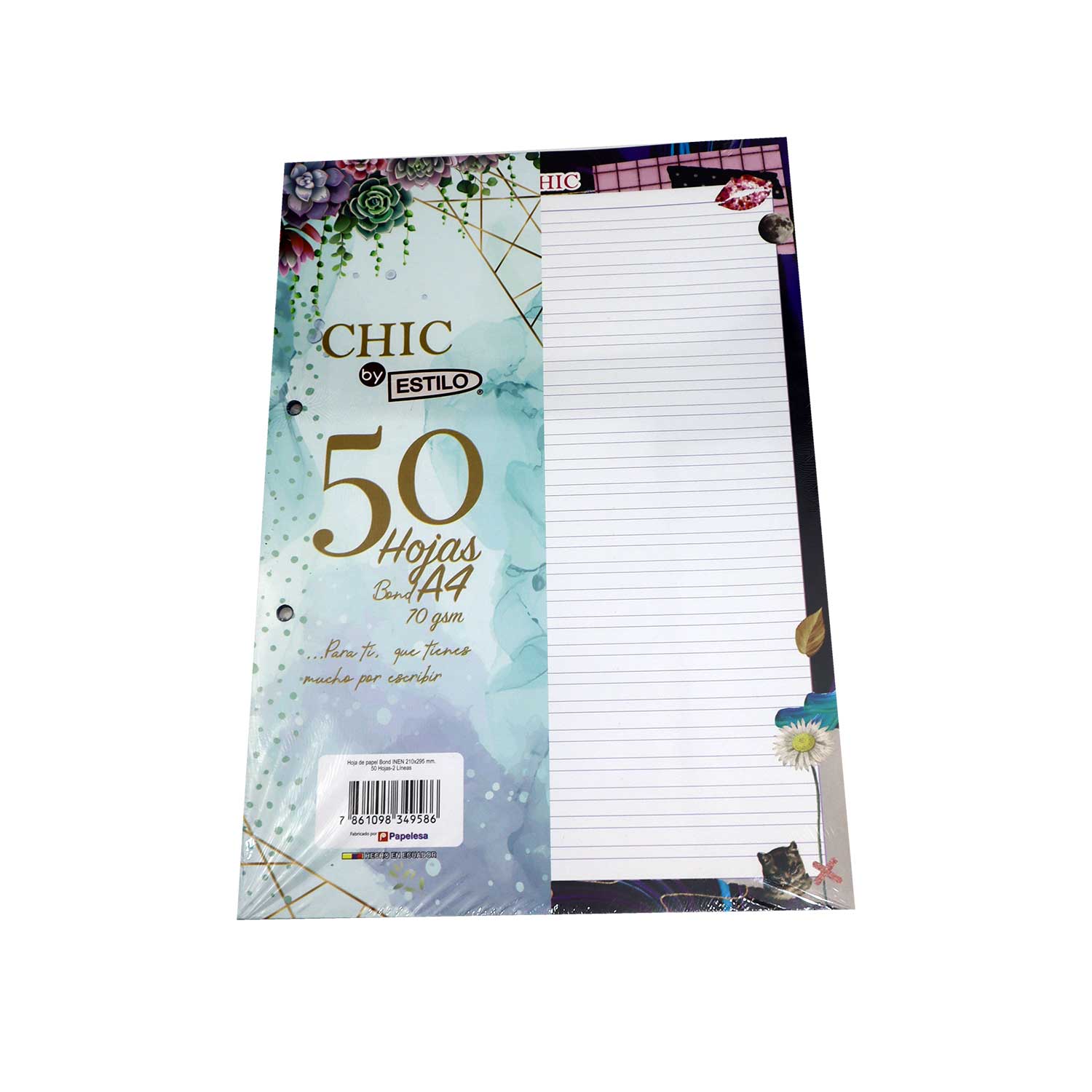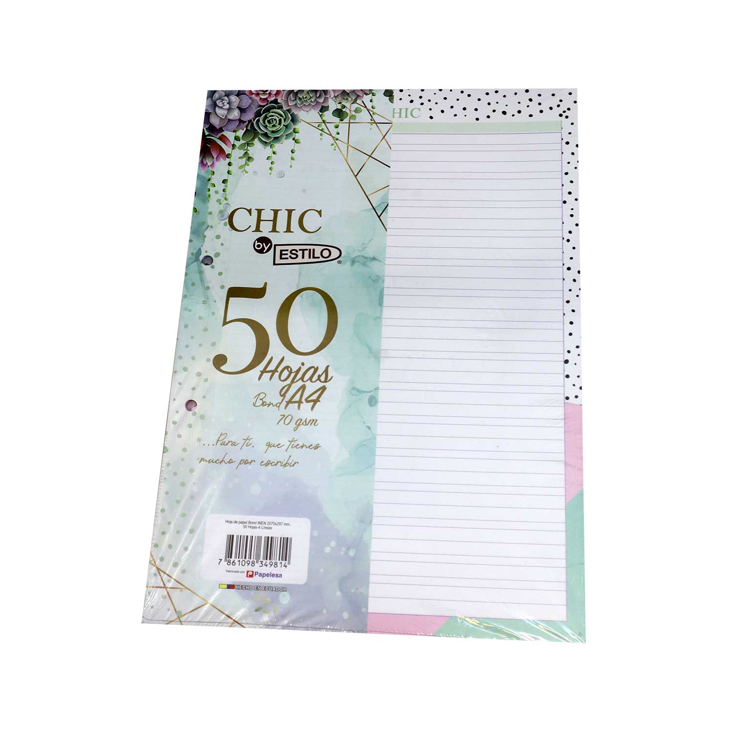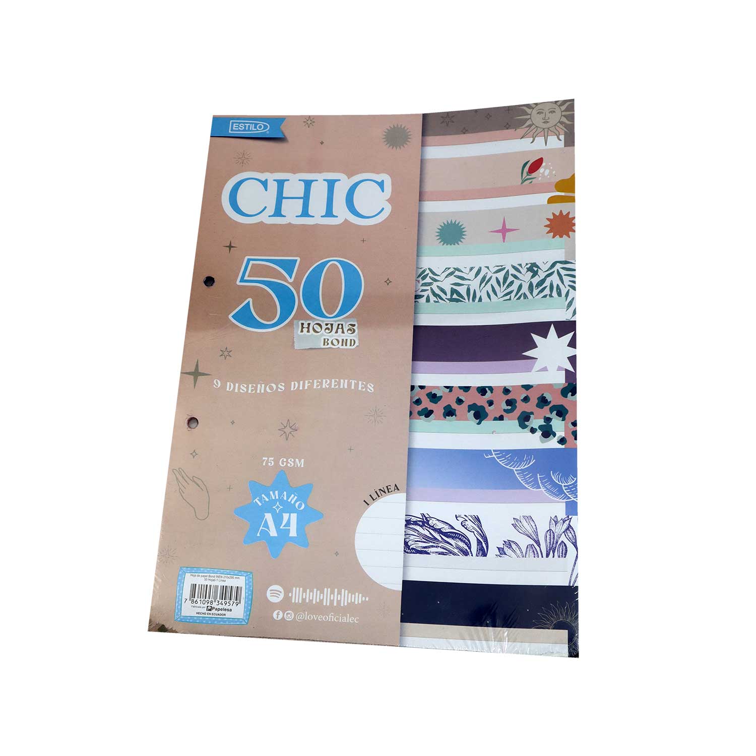 HOJA CHIC 60 GR A4 FUNDA DE 50 UNIDADES DISPONIBLE RAYADO 1 LINEA, 2 LINEAS, 4 LINEAS, CUADROS – 1 LINEA