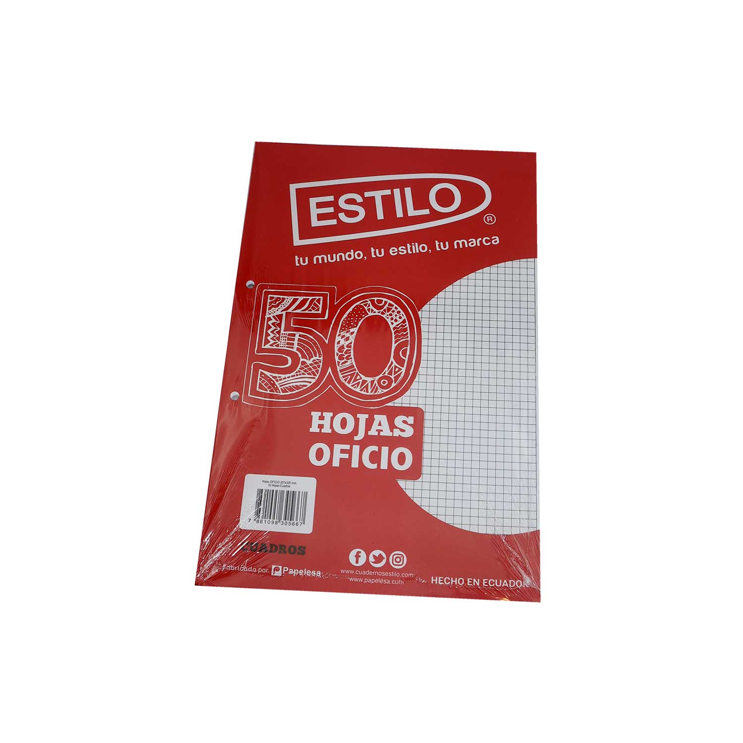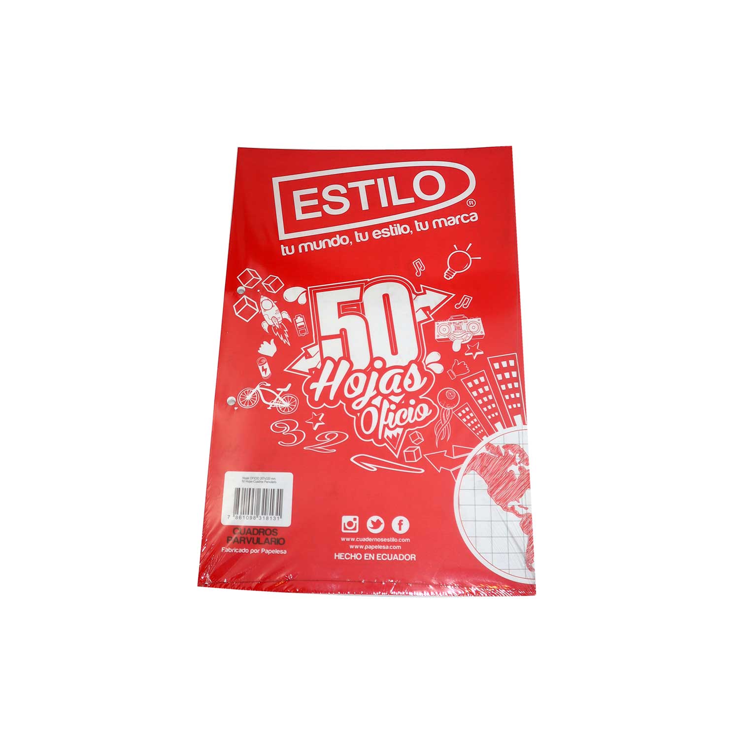 HOJA ESTILO 56GR OFICIO FUNADA DE 50 UNIDADES DISPONIBLE EN RAYADOS 1 LINEA, 2 LINEAS, 4 LINEAS, CUADROS, PARVULARIA 1 LINEA, PARVULARIA CUADROS, DIBUJO CON MARGEN – CUADROS
