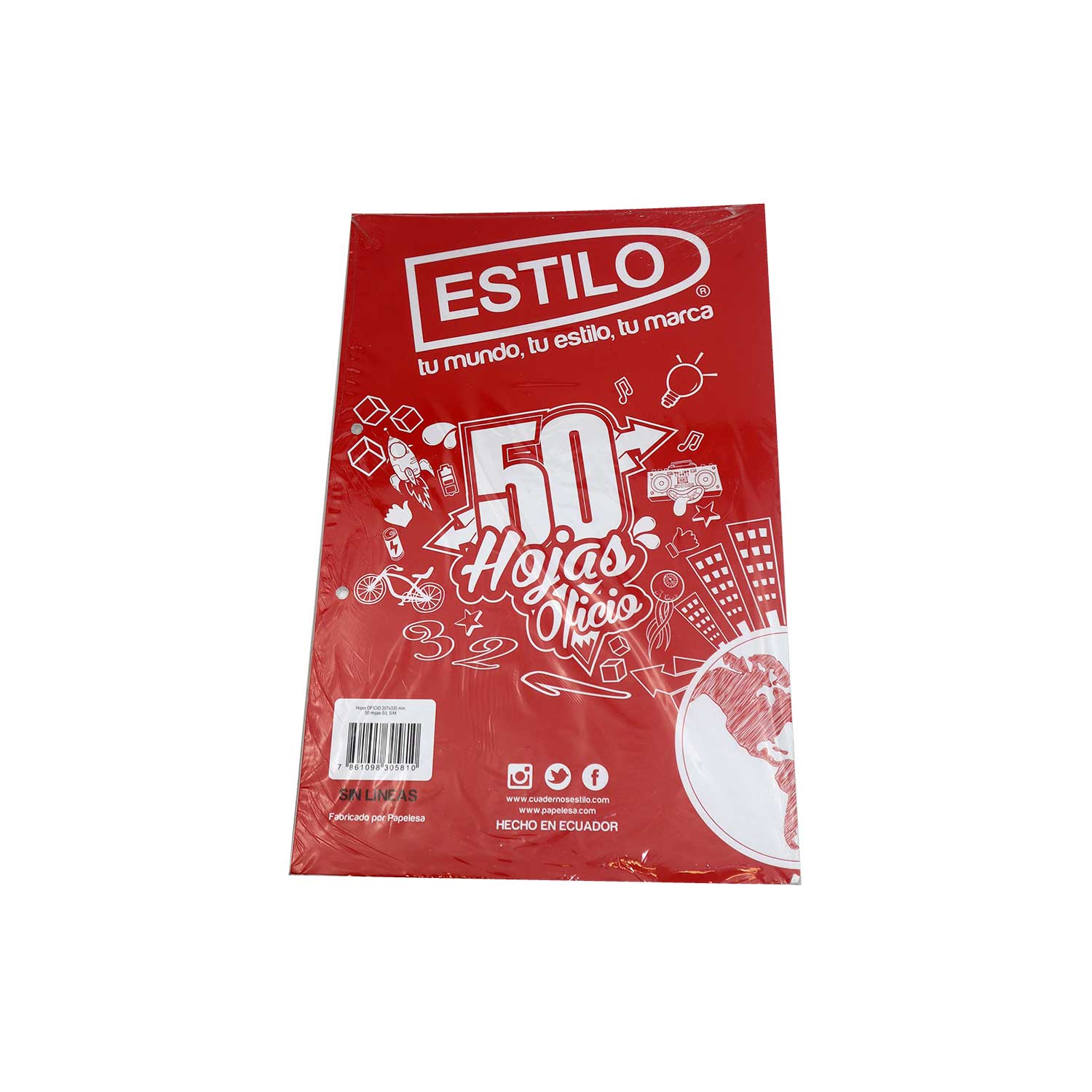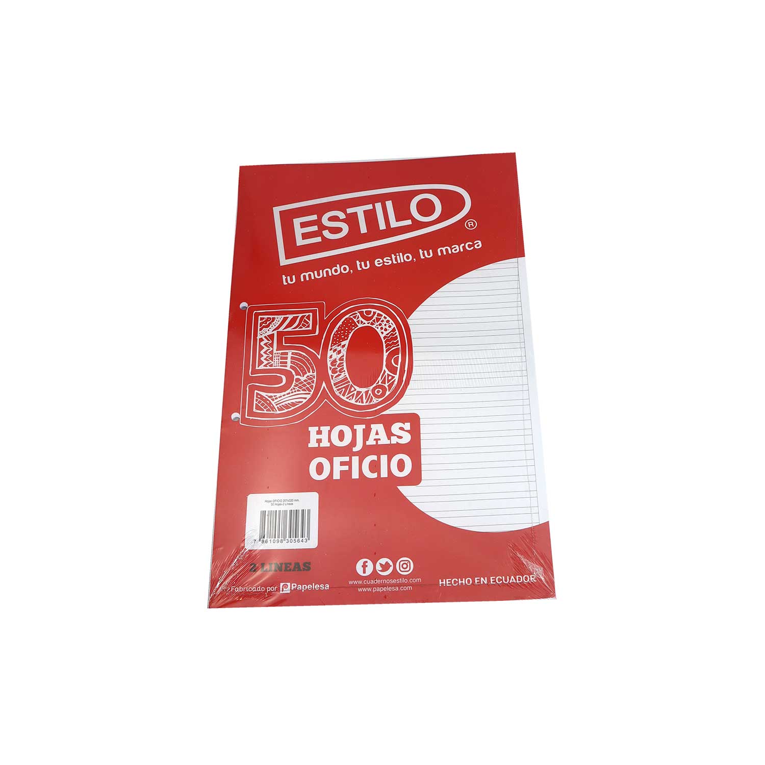HOJA ESTILO 56GR OFICIO FUNADA DE 50 UNIDADES DISPONIBLE EN RAYADOS 1 LINEA, 2 LINEAS, 4 LINEAS, CUADROS, PARVULARIA 1 LINEA, PARVULARIA CUADROS, DIBUJO CON MARGEN – DIBUJO CON MARGEN