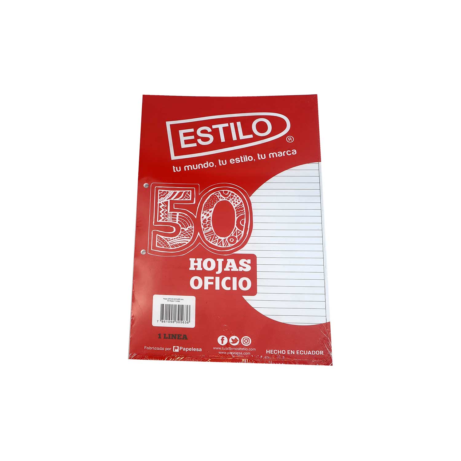 HOJA ESTILO 56GR OFICIO FUNADA DE 50 UNIDADES DISPONIBLE EN RAYADOS 1 LINEA, 2 LINEAS, 4 LINEAS, CUADROS, PARVULARIA 1 LINEA, PARVULARIA CUADROS, DIBUJO CON MARGEN – 1 LINEA
