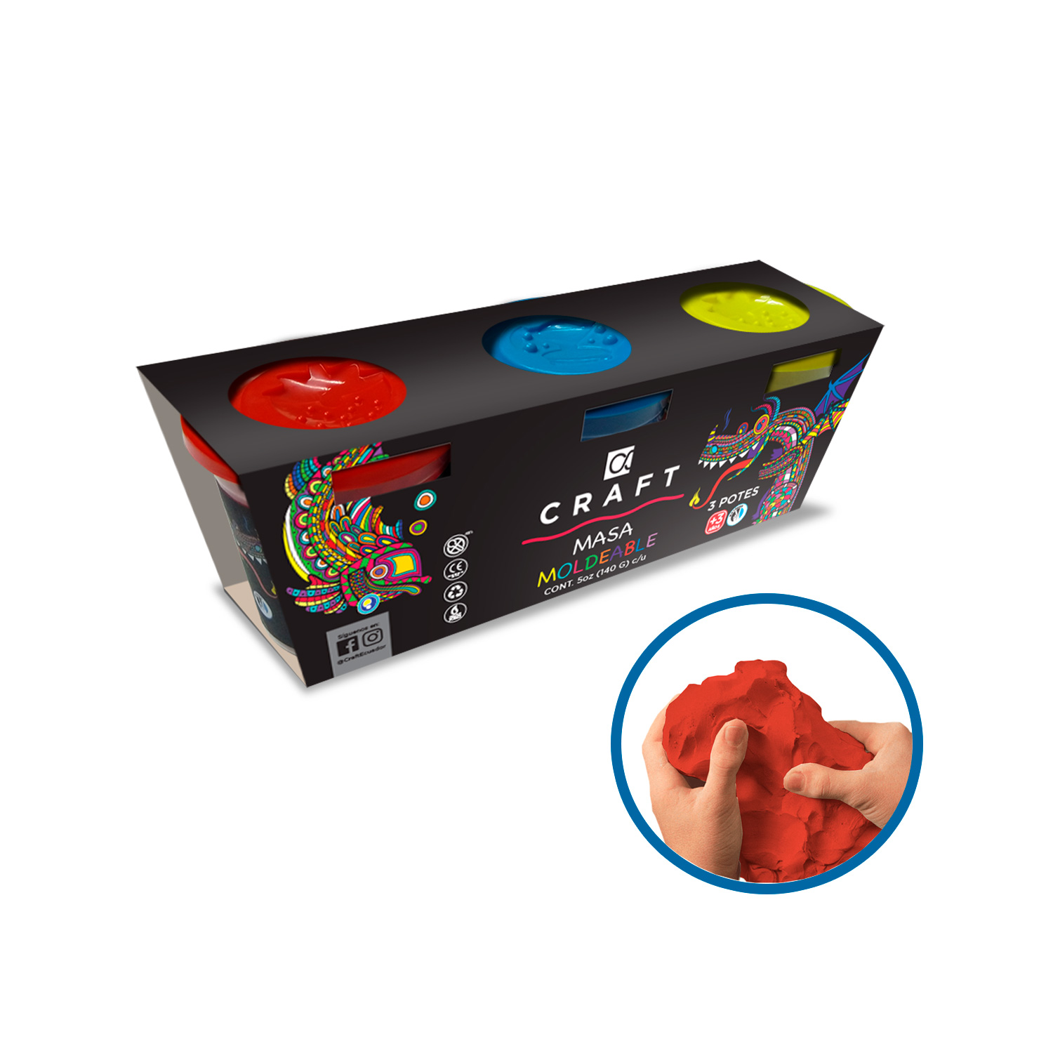MASA CRAFT PARA MOLDEAR 5 ONZAS 140 GR SET DE 3 COLORES