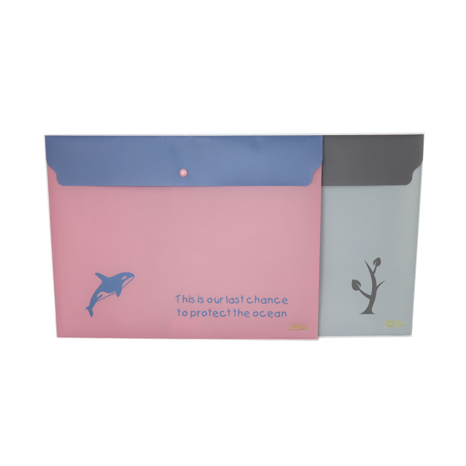 SOBRE PLASTICO ESTILO A3 CON BOTON COLORES PASTELES GRIS, ROSADO REF.FB1180-W-A3