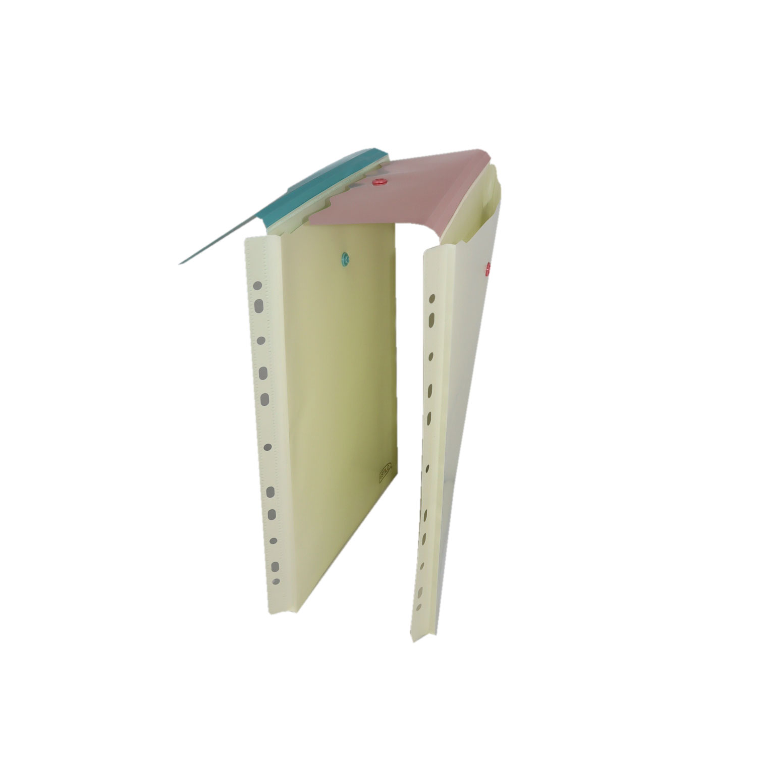 SOBRE PLASTICO ESTILO A4 VERTICAL CON 11 AGUJEROS ONDAS VERDE Y CORAL